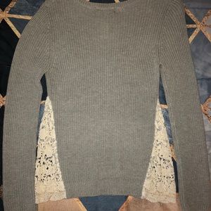 Grey, white laced sweater. Really good condition!