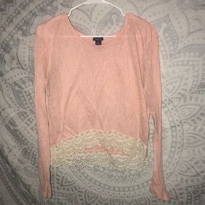Pink with white lace design on bottom