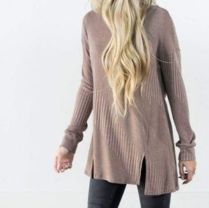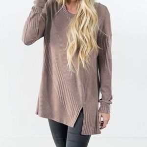 Knit Top has so much detail with 2 slits on both sides. Not a heavy sweater. Very roomy, if you wear a s/m than a small and so on!