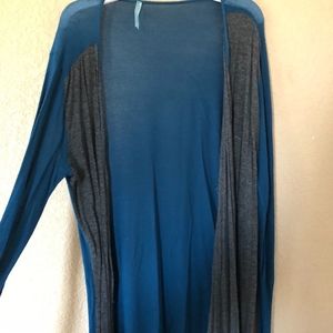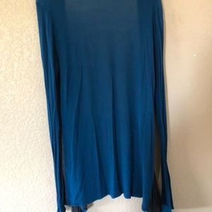Extremely comfortable and soft sweater. Fairly long in the front but shorter in the back. Nice long sleeves that basically feel like a pillow. Worn one, in great condition. Stretchy so can really fit anyone