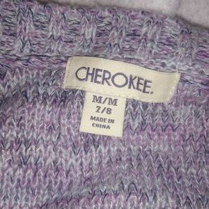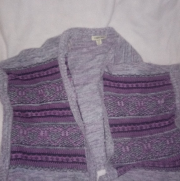 A purple and gray sweater