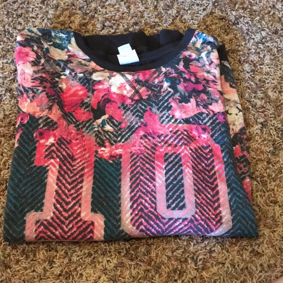 This sweater has a funky floral design in the front with the number 10. (I don’t know why the #10 was on it) and it has a solid gray back to it. This is another really comfy sweater and it is light weight