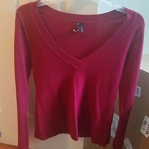 Maroon V neck long sleeve light sweater