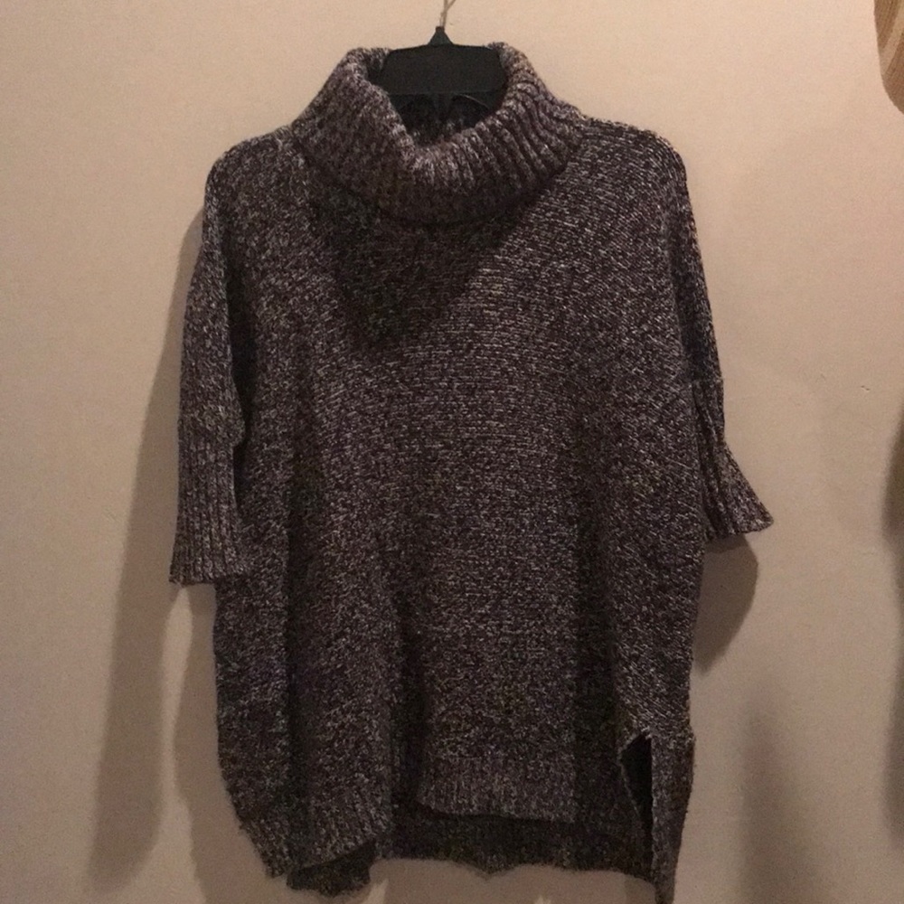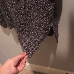 Soft, grey sweater that is perfect for fall! It has quarter length sleeves that tighten around the arms near the elbow. There are slits on the bottom of the sweater giving the piece a boxy look when worn with jeans and boots!