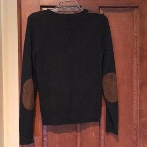 Beautiful dark green wool sweater with leather elbow patches