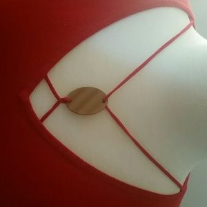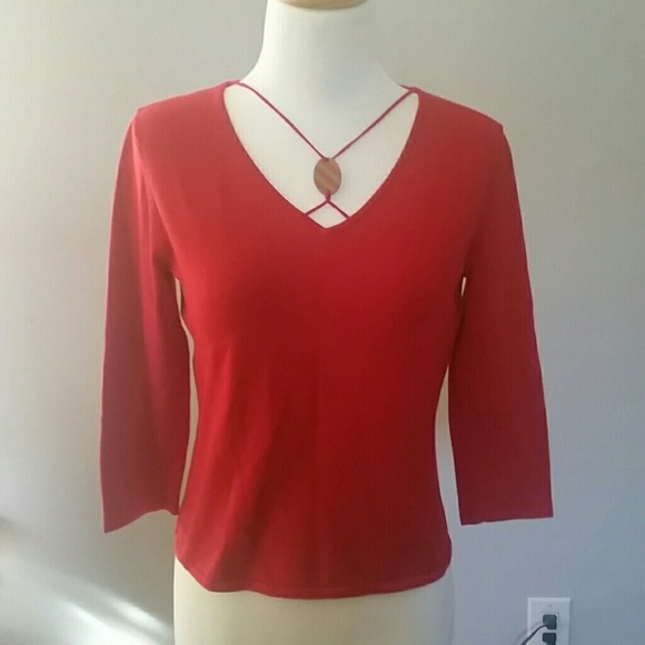 Red sweater, no holes or discoloration, acrylic/cotton/nylon