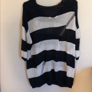 Black & white striped part see through sweater. Perfect over leggings & booties with a cute bralette!