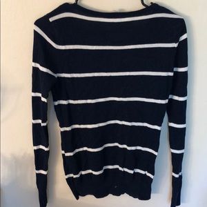 Navy blue & white v-neck striped long sleeve sweater