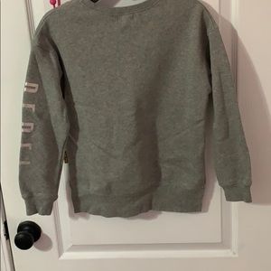 Grey sequence sweater. Splits on sides.