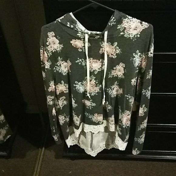 Flowery casual sweater with hoodie