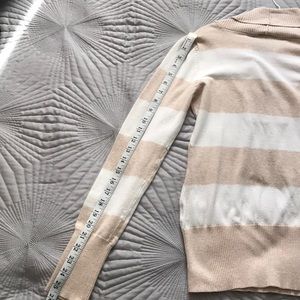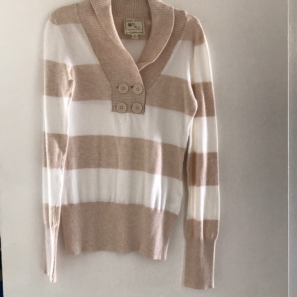 Cute and comfortable sweater. Runs large. Material: 78% cotton 19% nylon 3% spandex