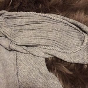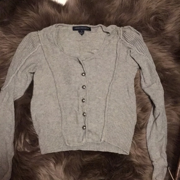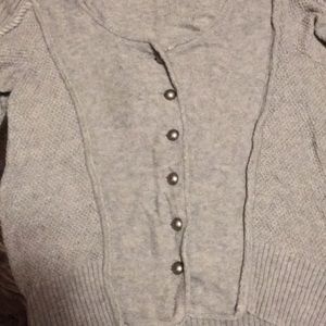 Military looking sweater in gray with dark gray faux pearl buttons.