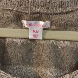 Thin sweater, scoop bottom. Super comfy and not itchy at all!