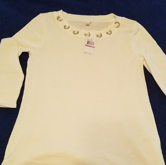 Beautiful lightweight sweater with detailed neckline. Perfect for Holiday photos for parties!