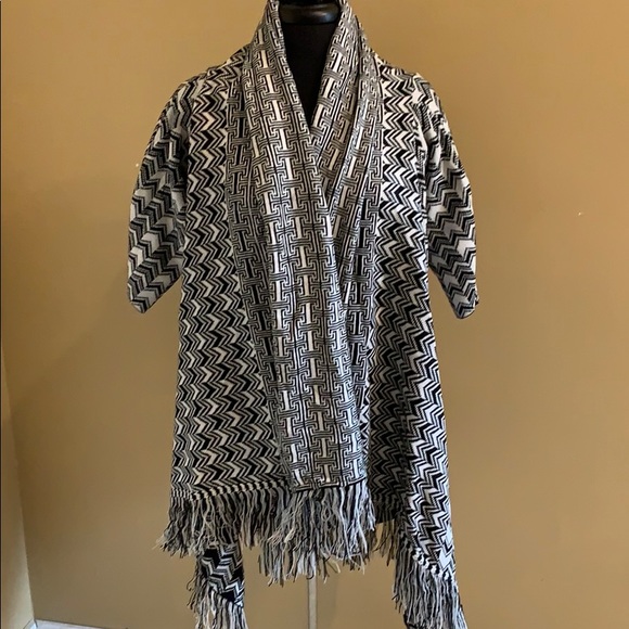 Black and white sweater wrap with sleeves