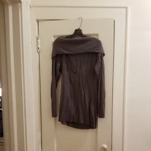 Off shoulder gray sweater, hits at hips, 60% cotton 40% rayon