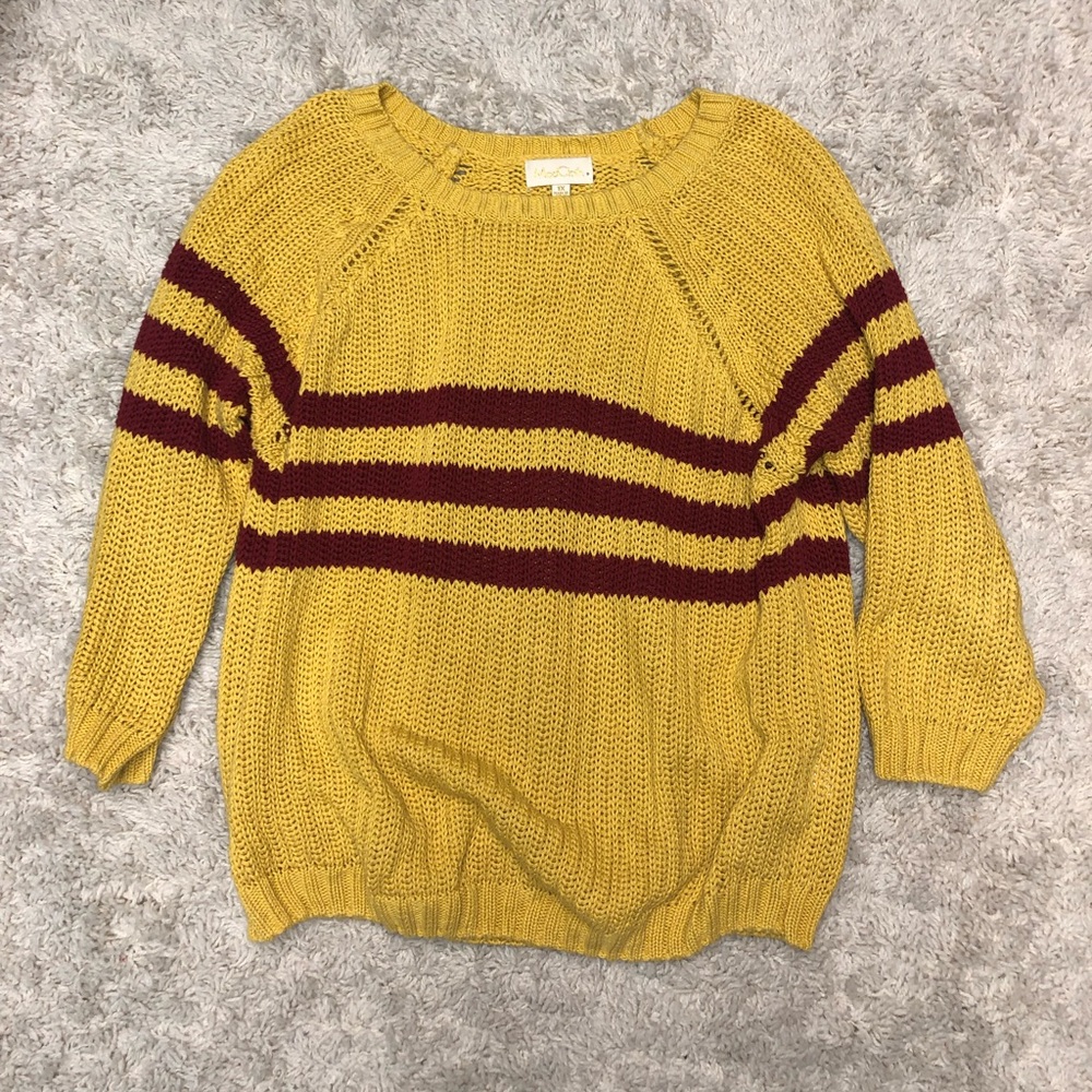 Yellow and maroon cropped sweater, very comfortable