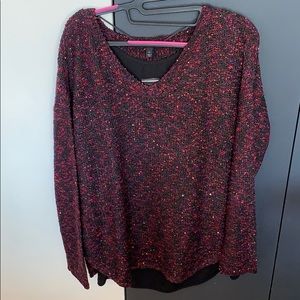 ✨Multi purple and Black sequined long sweater with attached black blouse. NWT I keep folded to keep its shape. Looks fabulous dressy as well as causal!
