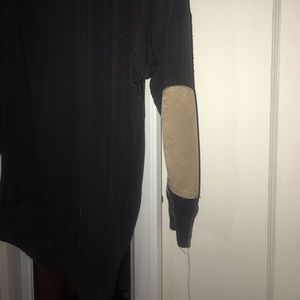 Extremely soft and “worn” (comes like that) thin material. Dark gray. Patchwork in elbows