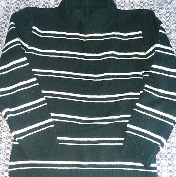 Very nice black and white striped sweater, worn only a few times. It does not have a tag on it with size bit I would say a small or medium. Very nice non itchy material.