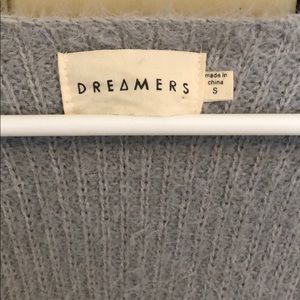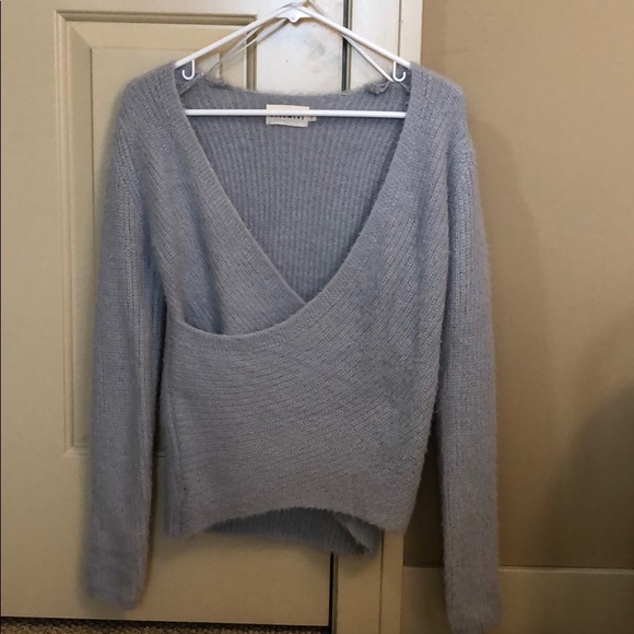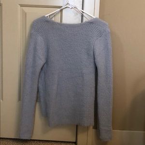 Soft grey/blue sweater. Size small. Cute cross/overlap in the front! Never been worn.