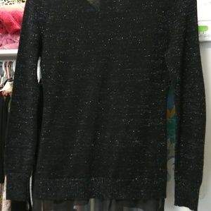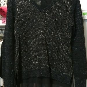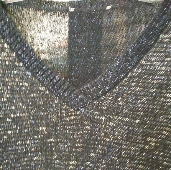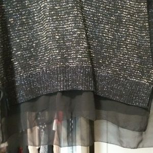 Really cute sweater v-neck with Silver Thread running through it and it has a chiffon bottom seen in photos the tags are missing and then reflection the price