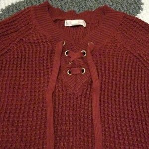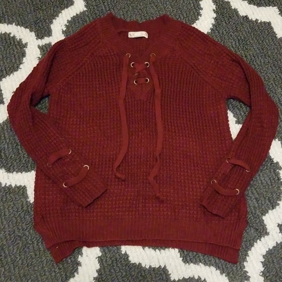 Maroon sweater.