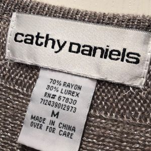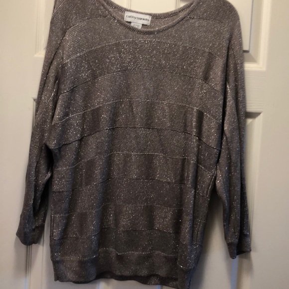 Glitter Cathy Daniels grey sweater has glittery sparks thru out it I believe the sleeves are called dolman sleeves this is lightweight sweater great for work or dressy occasions