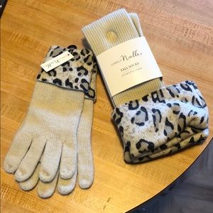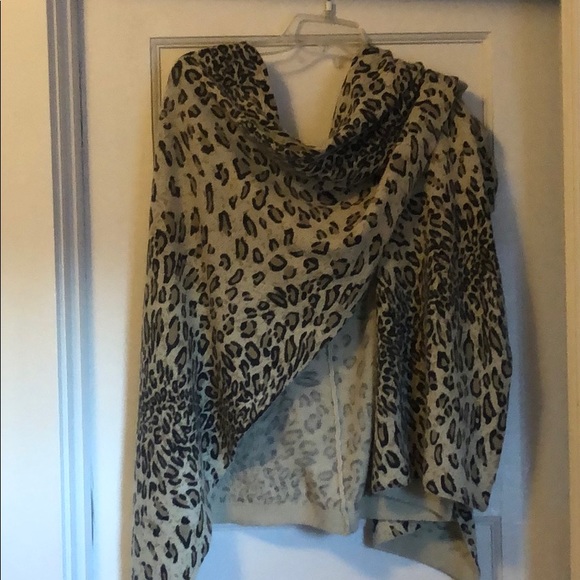 Leopard sweater wrap can be worn several ways. Boot socks and gloves included.