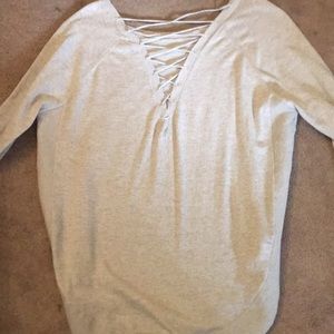 Beige sweater with a criss-cross detailing in the back. Cute with leggings or a pair of jeans. Only worn a few times.
