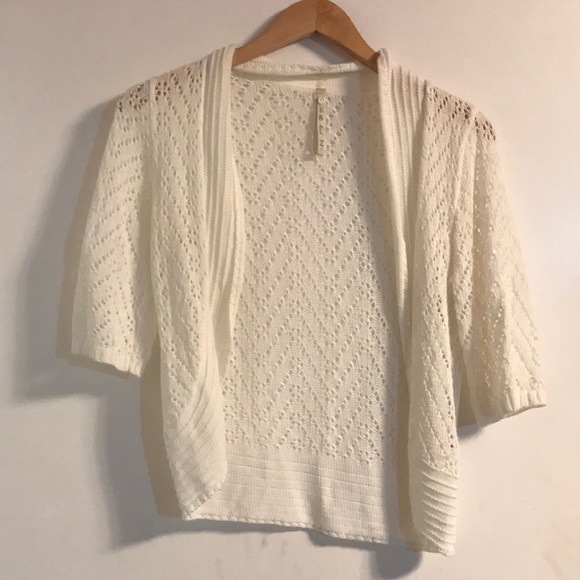 White thin sweater. Okay condition. Half sleeves. Nice pattern throughout.