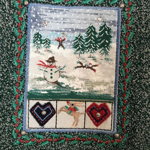 This is a beautiful Christmas-themed sweater. Very comfortable, very warm.