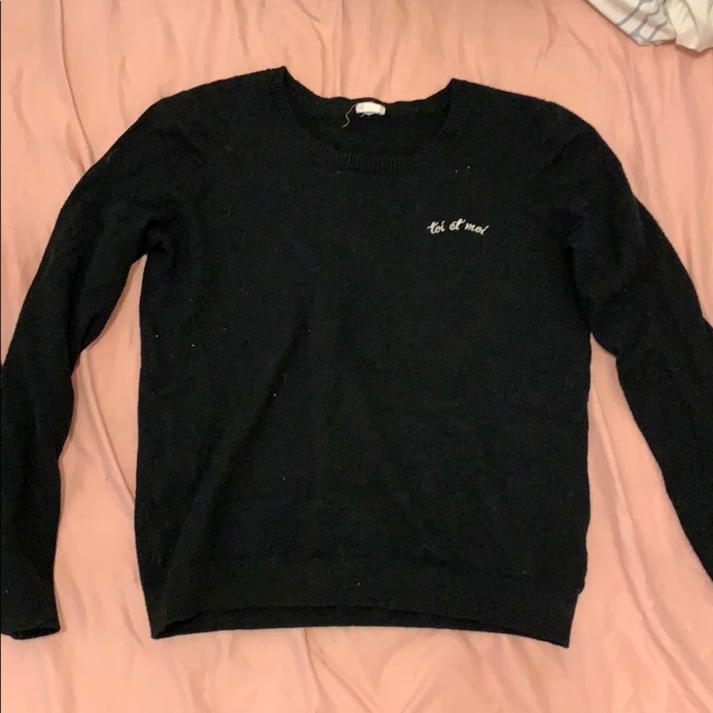 LG size black sweater, fits like a small. Embroidery says “toi et moi”