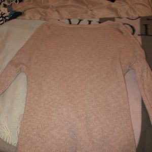 Light pink sweater with zippers up the shoulders