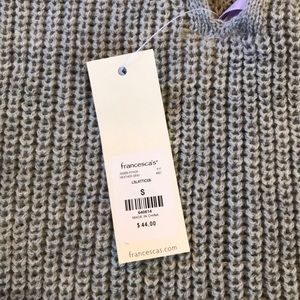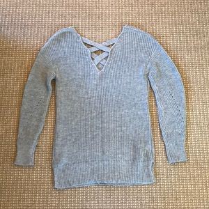 Francesca’s gray sweater with cross cross detailing on the back. Never Worn With Tags.