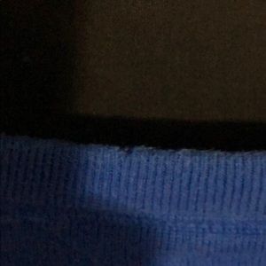 Beautiful blue sweater. A tiny hole in the collar. See pictures. Price refers the little hole. Really not noticeable to me