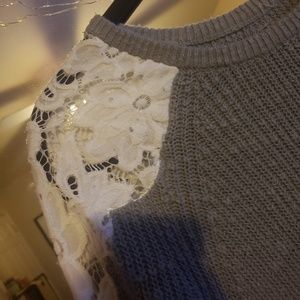 Grey sweater with laced shoulders