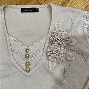 This sweater my mom bought in Europe. It’s good condition. It says XXL size but I would say it looks more like it’s size L or XL , it’s stretchy though. Please refer to the pictures to see the visual condition of the item