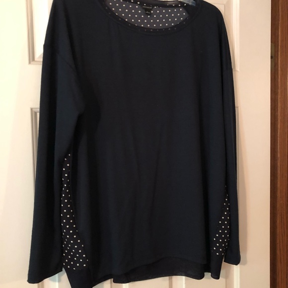 Navy blue long sleeve sweater solid front with polka dot back