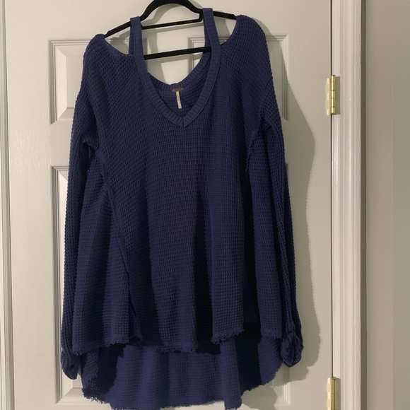Over sized knit sweater. Open shoulder. The edges are frayed whick makes it even cuter!