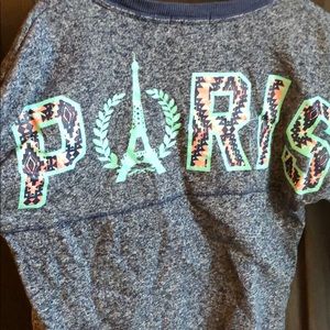 Long sleeve, fleece, PARIS sweater! Light purple and teal, super comfy and warm for layering in the winter! Lightly used condition!