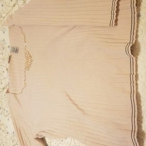 Long sleeve light weight pink tone , bling around neck, stripes on bottom, good condition