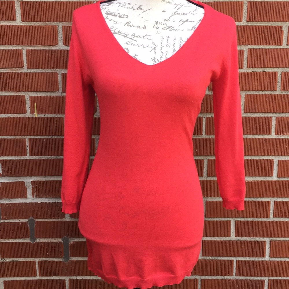 Deb sweater. Beautiful peach orange color. See through in back. Worn once. Light pilling one spot. See picture.