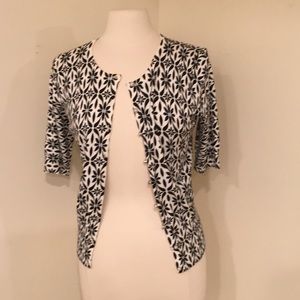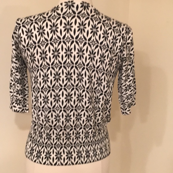 Black and off white design, open front with pearl buttons