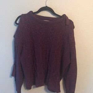 Marroon blue warm sweater. It has 3 peek a boo openings on each arm . It’s very cute. Not sure why I’m selling it. Lol