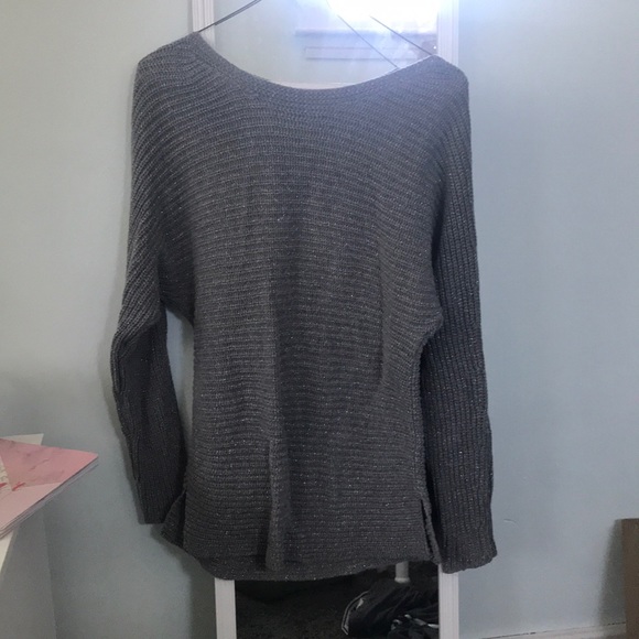 Long sweater with sliver tins in the weaving
