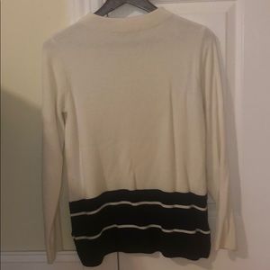 Soft sweater mostly white but some navy strips at the bottom