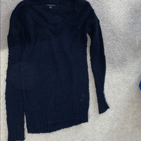 V-neck. Stretchy bottom. Fits well. Comfy and warm. Great condition. Has sparkly undertone