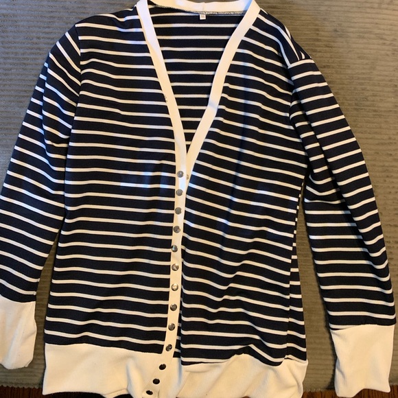 Navy blue stripes and silver buttons