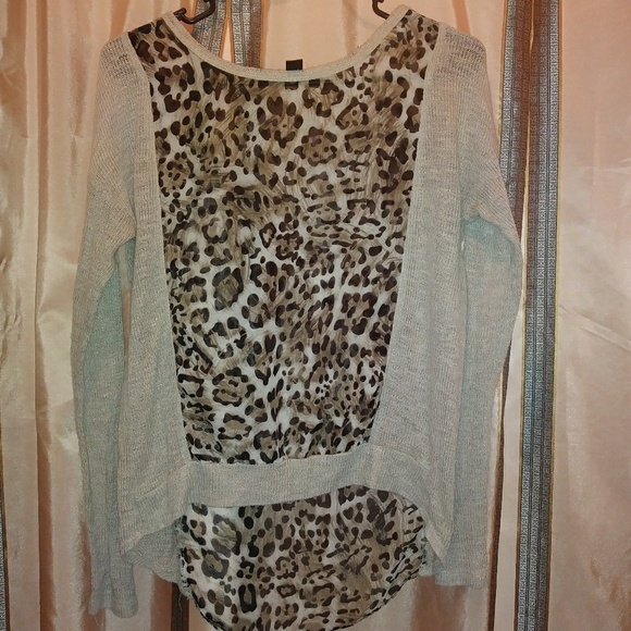 Long sleeve sweater with sheer animal print inset. Really pretty. Good condition